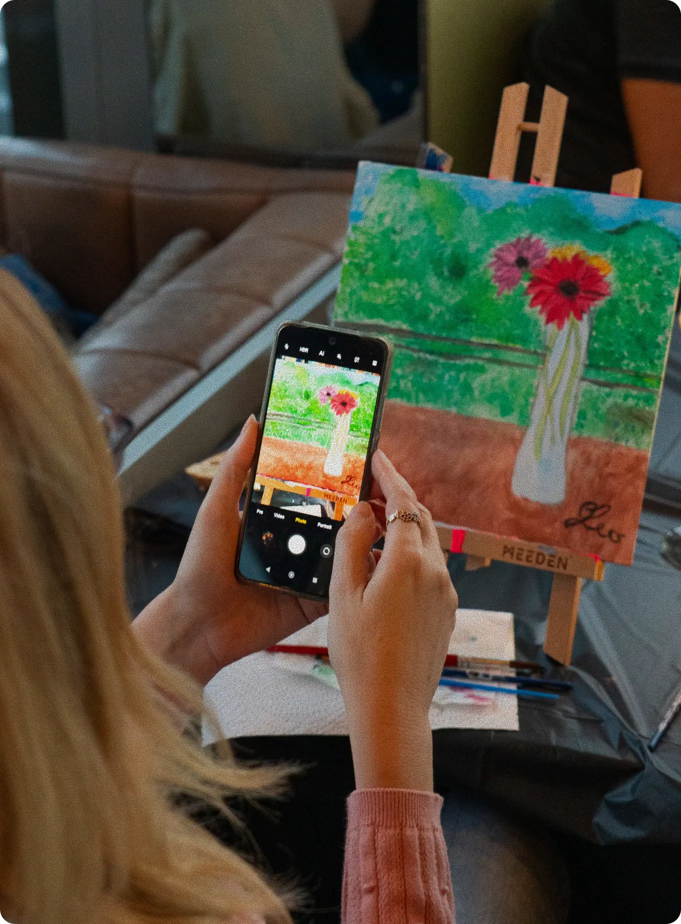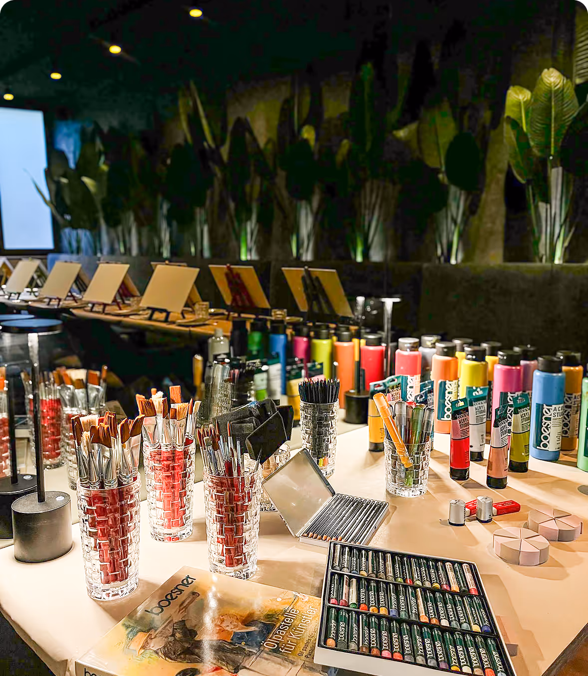 Ein Abend zwischen Farbe und Geschmack. Entweder öffentlich an ausgewählten Terminen oder exklusiv für eure Gruppe buchbar. Tapas in der Mitte, Pinsel in der Hand – der Rest entsteht ganz von selbst.